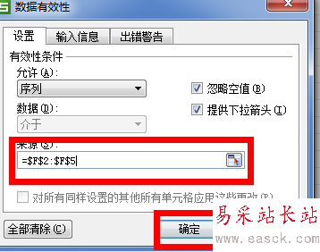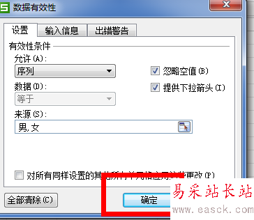 5、在來源里面手動添加需要的字樣,中間使用逗號隔開。
