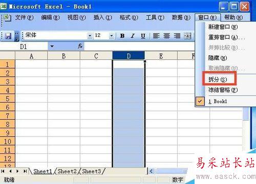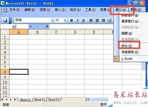 2、點擊表格左側的數字以后點擊上面的窗口,然后再點擊下拉菜單上面的拆開