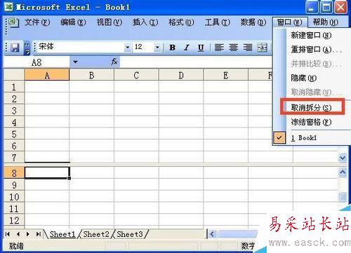 5、如果要取消拆開只需要點擊窗口,然后點擊下拉菜單上面的取消拆開即可
