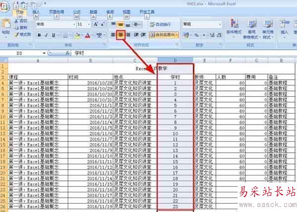在一列或者一行出現多種格式時,會出現格式混亂,顯得難看,需要批量對齊。選中連續的單元格,點擊菜單導航欄的對齊方式進行對齊,如圖: