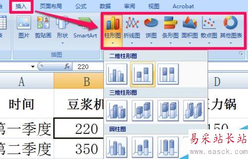 2、點擊菜單欄中的插入選項卡,然后選擇要制作的圖表類型點擊插入。