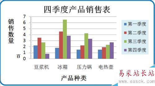 3、這時可以看到一個基于產品銷售數據的excel圖表便已經制作好了,接下來還要對它進一步完善。
