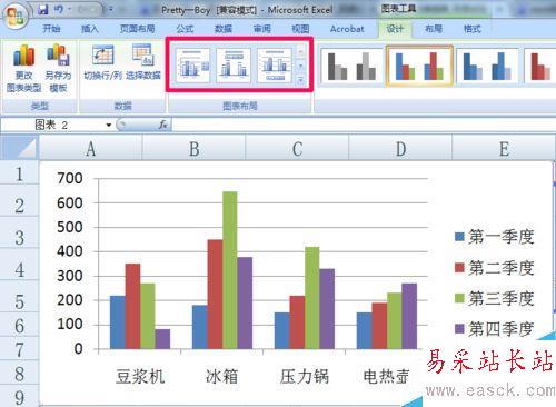 4、在excel圖表上雙擊然后可以選擇圖標布局。