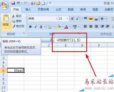 例2,11選5共有多少種排列方式呢,一個(gè)公式就可以求出 =PERMUT(11,5)