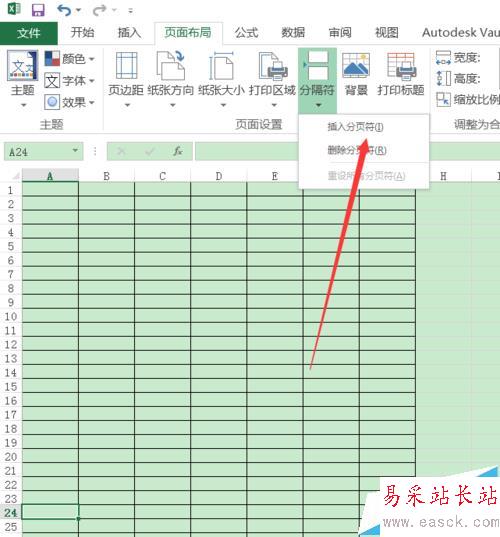 5、在打開的下拉列表中單擊【插入分頁符】選項