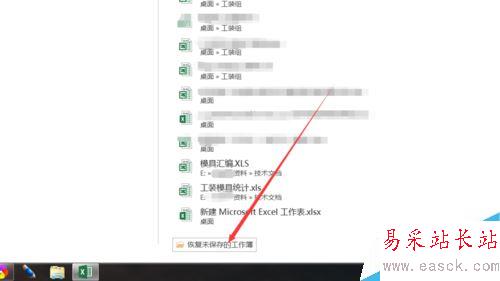 在【文件】菜單中點(diǎn)擊【打開】按鈕,在展開的【打開】列表中選擇【最近使用的工作簿】選項(xiàng),單擊右下側(cè)鼠標(biāo)【恢復(fù)未保存的工作簿】按鈕
