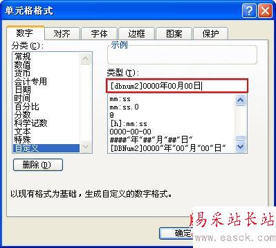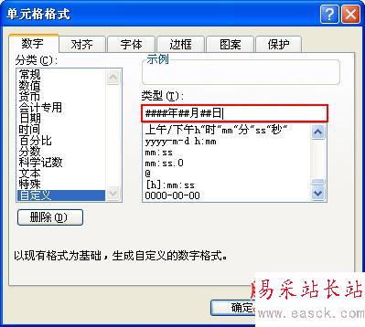 步驟和上面差不多,但是在類型輸入框中輸入【####年##月##日】格式,然后確定。如圖所示: