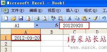 顯示格式,我們來看看剛才設置的格式吧,選擇剛才設置的單元格,輸入20120920,然后回車。如圖所示:
