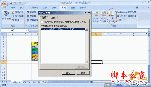 選擇“審閱”菜單(在老版本的Excel中對應的是“工具”菜單),然后點擊菜單下方的“共享工作簿”按鈕,彈出用于設置共享工作簿的對話框。運行結果如圖2所示。