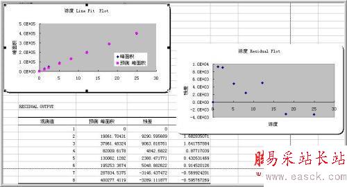 在線性擬合圖中可以看到,不但有根據要求生成的數據點,而且還有經過擬和處理的預測數據點,擬合直線的參數會在數據表格中詳細顯示。本實例旨在提供更多信息以起到拋磚引玉的作用,由于涉及到過多的專業術語,請各位讀者根據實際,在具體使用中另行參考各項參數,此不再對更多細節作進一步解釋。