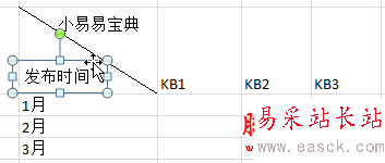 同樣的方法,把表頭中其它的內(nèi)容都輸入到文本框,最后一一拖拽過(guò)去,找個(gè)合適的地方放置好就可以啦!(這里小易以單斜線表頭為例,多斜線表頭只要多建幾個(gè)文本框即可)
