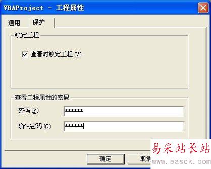 6、切換到“保護”標簽下,選中“查看時鎖定工程”選項,并輸入密碼,確定返回(參見圖3)。