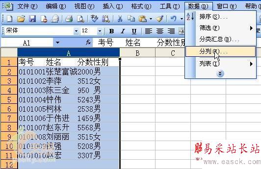 只能再試試Excel了,終于在“數據”菜單中找到了Excel的“分列”命令,以下就是解決問題的全過程。