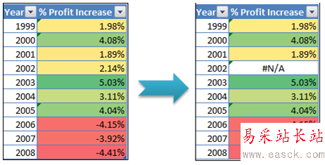 在Excel 2010中,條件格式悄悄地忽略了這些錯誤,繼續應用條件格式到該區域中剩下的單元格。