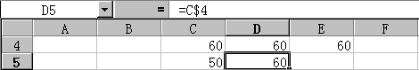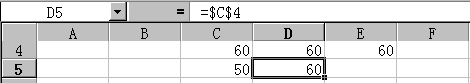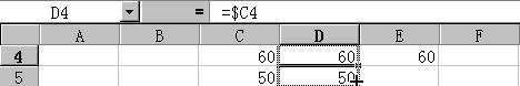 在一個工作表中,在C4、C5中的數據分別是60、50。如果在D4單元格中輸入“=C4”,那么將D4向下拖動到D5時,D5中的內容就變成了50,里面的公式是“=C5”,將D4向右拖動到E4,E4中的內容是60,里面的公式變成了“=D4”。