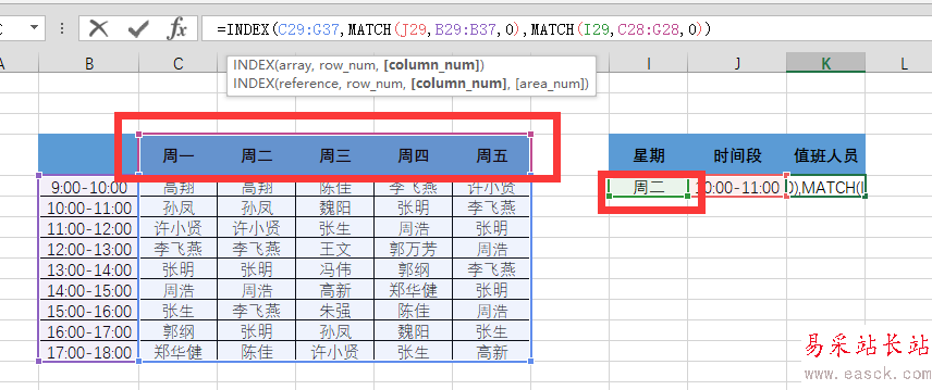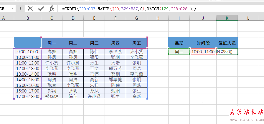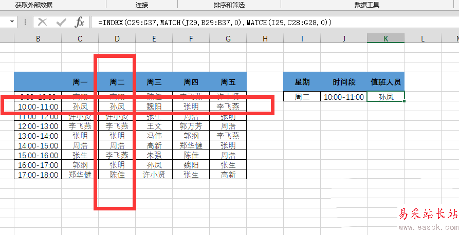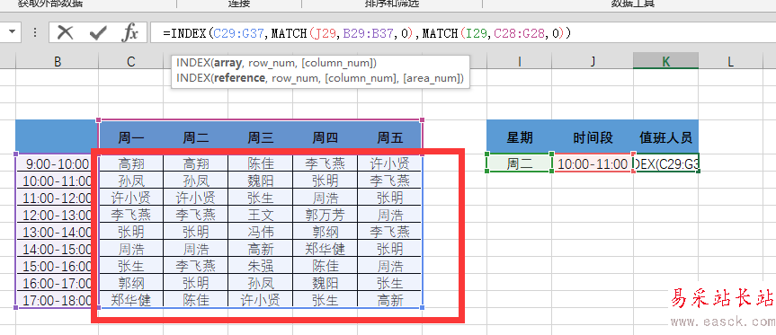 Excel中index函數(shù)怎么快速查找值班人員?