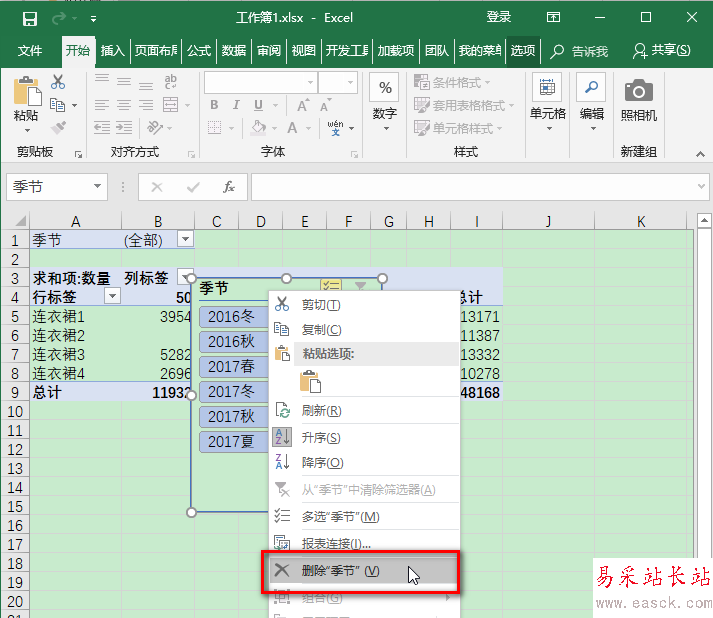 6、如果不想要了,可以在切片器上右鍵刪除掉。