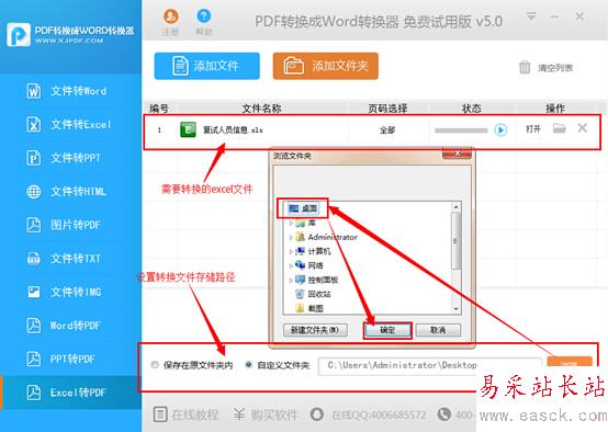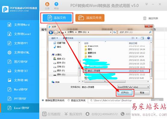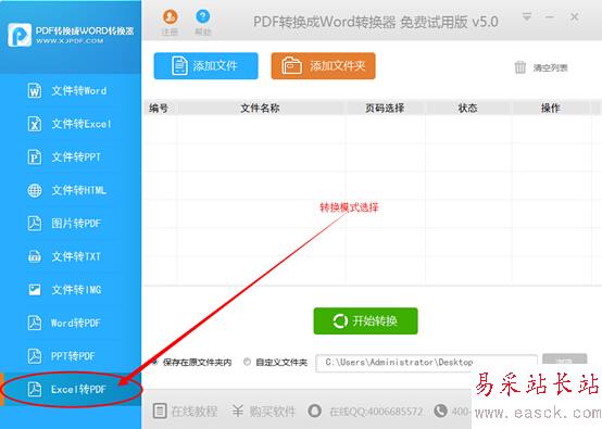 (3)轉換模式選好之后,點擊“添加文件”按鈕,將需要轉換的excel文件加入到軟件當中,大家也可以直接拖拽文件到軟件界面上進行快速添加。該軟件還支持同時添加多個文件。