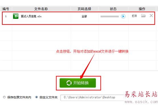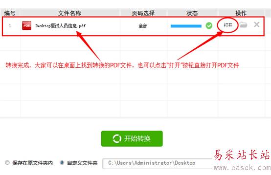 (5)點擊軟件中的“開始轉換”按鈕開始文件轉換工作,片刻之后大家就可以看到文件轉換成功,軟件中原來的excel文件變成了pdf文件。