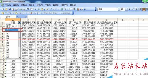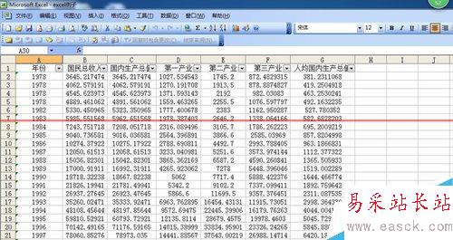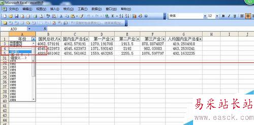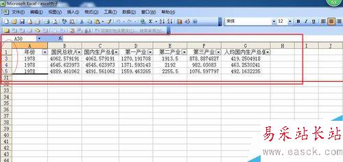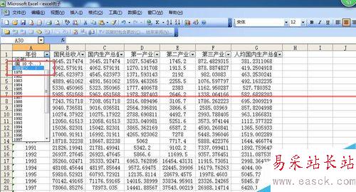 6、單擊“確定”后,關閉對話框,返回工作表,就可以看到Excel表格中只對年份為1978年的數據進行顯示。
