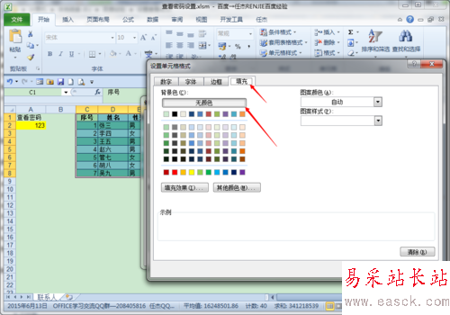 在“設(shè)置單元格格式”/“填充”/“背景色”中,點(diǎn)擊“無(wú)顏色”。