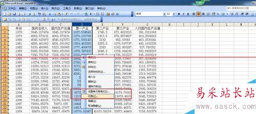 3、如果需要精確調整行高,先選中所要調節的行或列,單擊鼠標右鍵,在彈出來的對話框中,選擇“列寬”