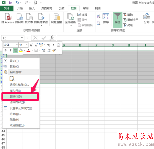 6、選中篩選出的空白行,然后右擊,點擊“刪除行”。這樣就可以將空白行刪除掉。