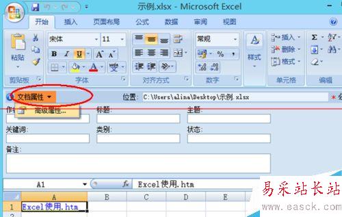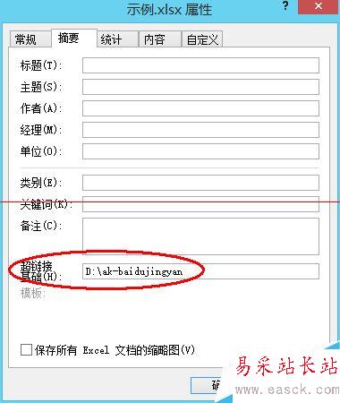 3、在屬性摘要中的超鏈接基礎中填入之前連接文件所在目錄的地址。
