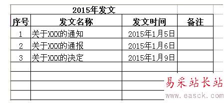 2、制作名為“2015年收發文”的excel表格 ,表格內容如下