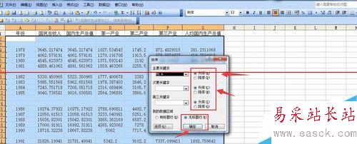 5、在彈出的“排序”的對話框中,選擇升序,點(diǎn)擊“無標(biāo)題行”,然后單擊“確定”