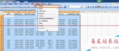 4、如果有太多空行,也可以一次性全部刪除哦。選擇所需要的行列,點(diǎn)擊上方功能區(qū),單擊“數(shù)據(jù)”,在展開的選項(xiàng)卡中選擇“排序”選項(xiàng)。