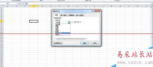 2、在編輯框中,選擇設(shè)置,有效性條件中,“允許”一欄選擇“文本長(zhǎng)度”,“數(shù)據(jù)”這欄根據(jù)需要選擇。如果是要介于某些位數(shù)之間,就選介于,如果是要固定位數(shù),就選等于。