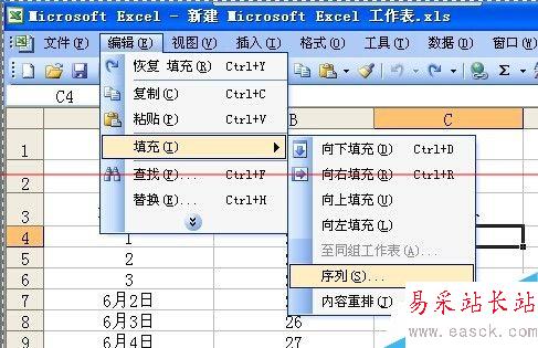 2、點擊:編輯--填充--序列。