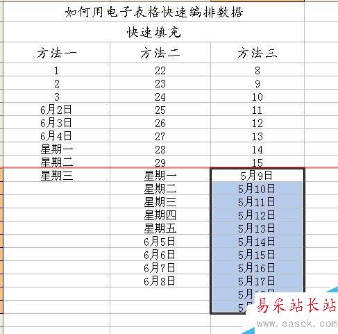 1、在數據量大,且需填充數據較規律的情況下,可以采用此方法。首先,先手動填充前三個數據。