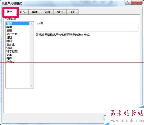 4、在彈出的“設置單元格格式”對話框中,選擇“數字”標簽。