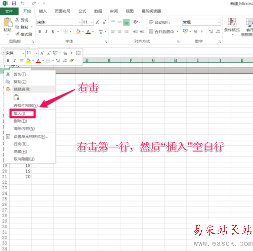 右擊需要插入分割線的行,插入空白行。