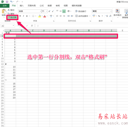 選中第一行的分割線,雙擊”開始“下的”格式刷“。