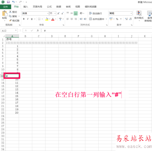 在插入的空白行第一列輸入“#”。
