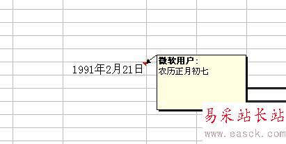 4、內(nèi)容所在單元格右上角出現(xiàn)一個紅色三角,將光標放在內(nèi)容上面,出現(xiàn)注釋。