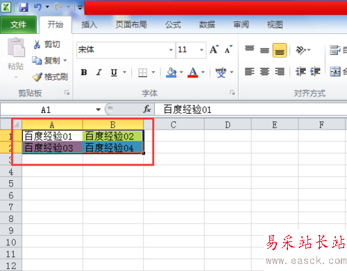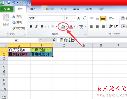 1、為了演示操作,小編這里新建一個Excel文檔,并給單元格背景加上顏色,如圖所示: