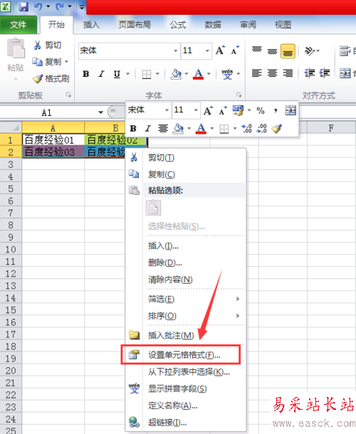 3、在右鍵菜單中,點擊“設置單元格格式”并打開,如圖所示: