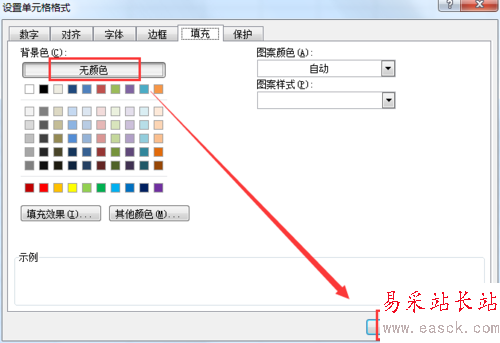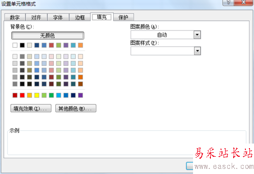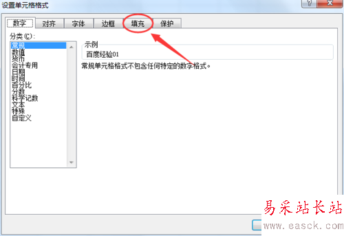 4、在設置單元格格式界面,點擊“填充”按鈕,打開填充界面,如圖所示: