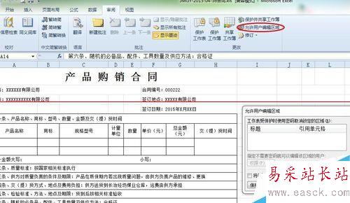 5、選出允許對方編輯的區域。如果區域有多個,可以按住ctrl鍵多選。