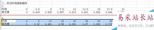 3、然后選中所需X軸范圍較大的數(shù)據(jù),先繪制曲線。小編的數(shù)據(jù)中,下方的數(shù)據(jù)范圍較大,那就先選中下方的全部數(shù)據(jù)。