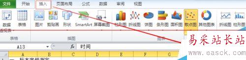 4、然后將上方的菜單欄切換到“插入”選項中,點(diǎn)擊“散點(diǎn)圖”下方的小三角形,選擇其中帶有平滑線的曲線類型。