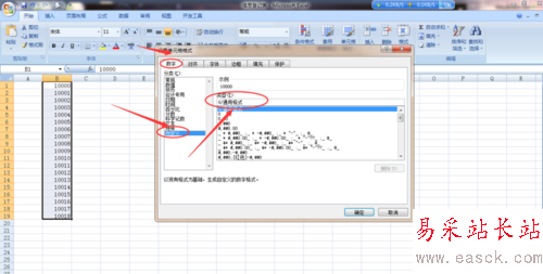 8、然后在自定義中找到數(shù)字設(shè)置的位置,我們可以看到有很多的格式讓我們選擇