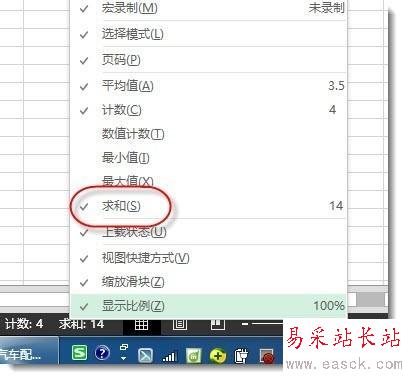 如果你在狀態欄中看不到這個效果的話,很可能是沒有開啟這個功能。右擊在彈出的菜單中選擇”求和“即可。