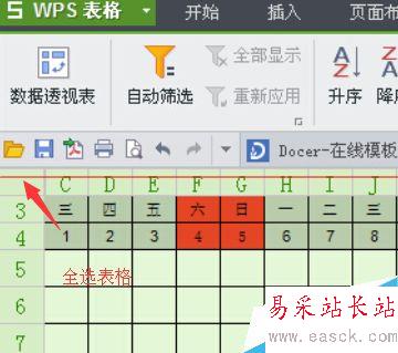 1、選擇表格左上角如圖所示的位置全選表格。