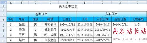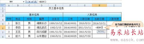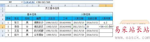 我們經(jīng)常會需要計算員工從入職的年限是多少,僅考人工去計算會是很大的工程,尤其是公司人員龐大的時候,所以我們需要能自動計算年限的方法,接下來就告訴大家如何在EXCEL表中自動計算: