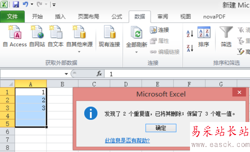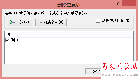選擇“刪除重復項”后,會彈出一個對話框,選擇“確定”即可